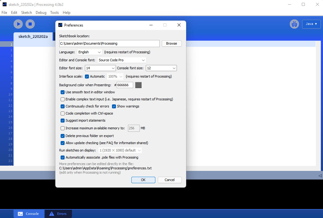 We will be using processing as the coding platform for this workshop. You can download processing here: https://processing.org/download/